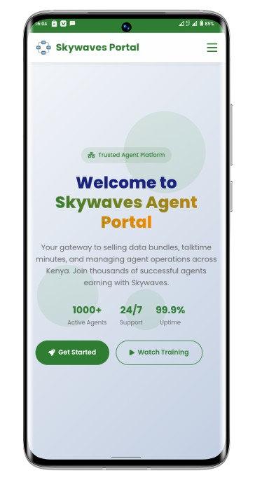 Your gateway to selling data bundles, talktime minutes, and managing agent operations across Kenya. Join thousands of successful agents earning with Skywaves.